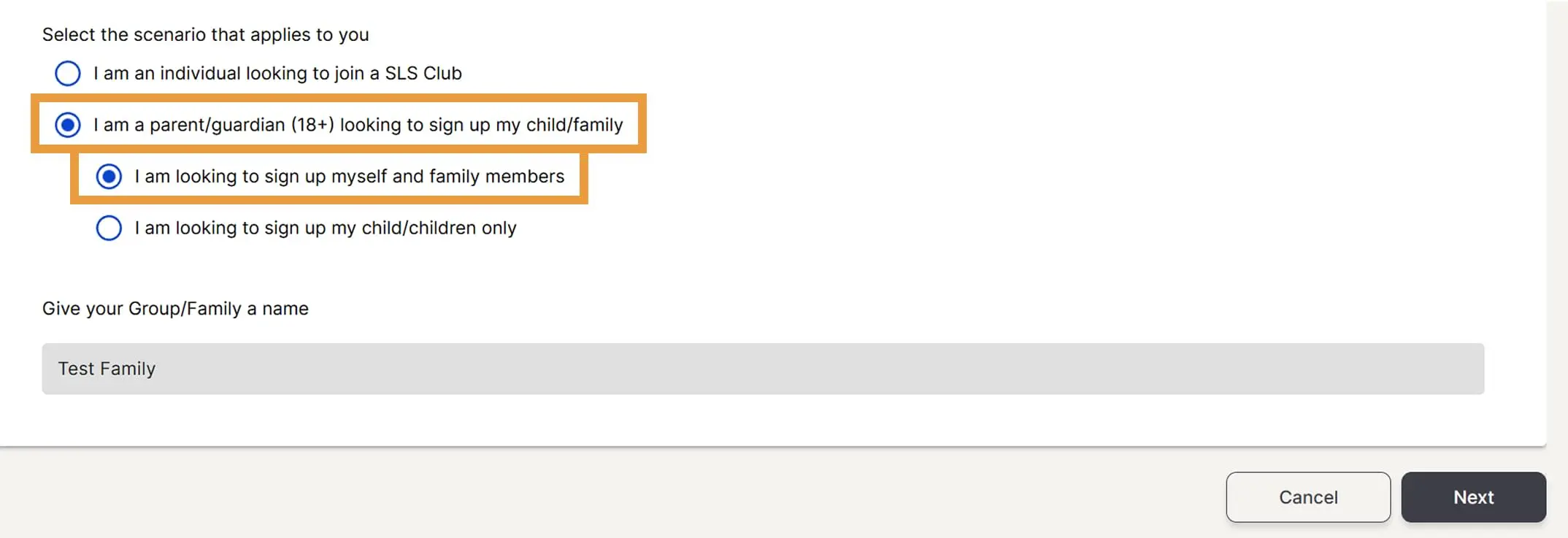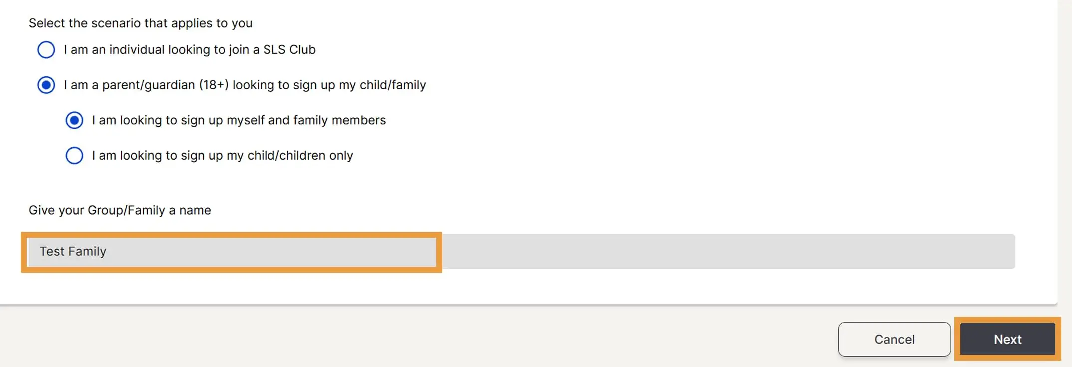 Select I am an individual looking to join a SLS Club. Then click Next.