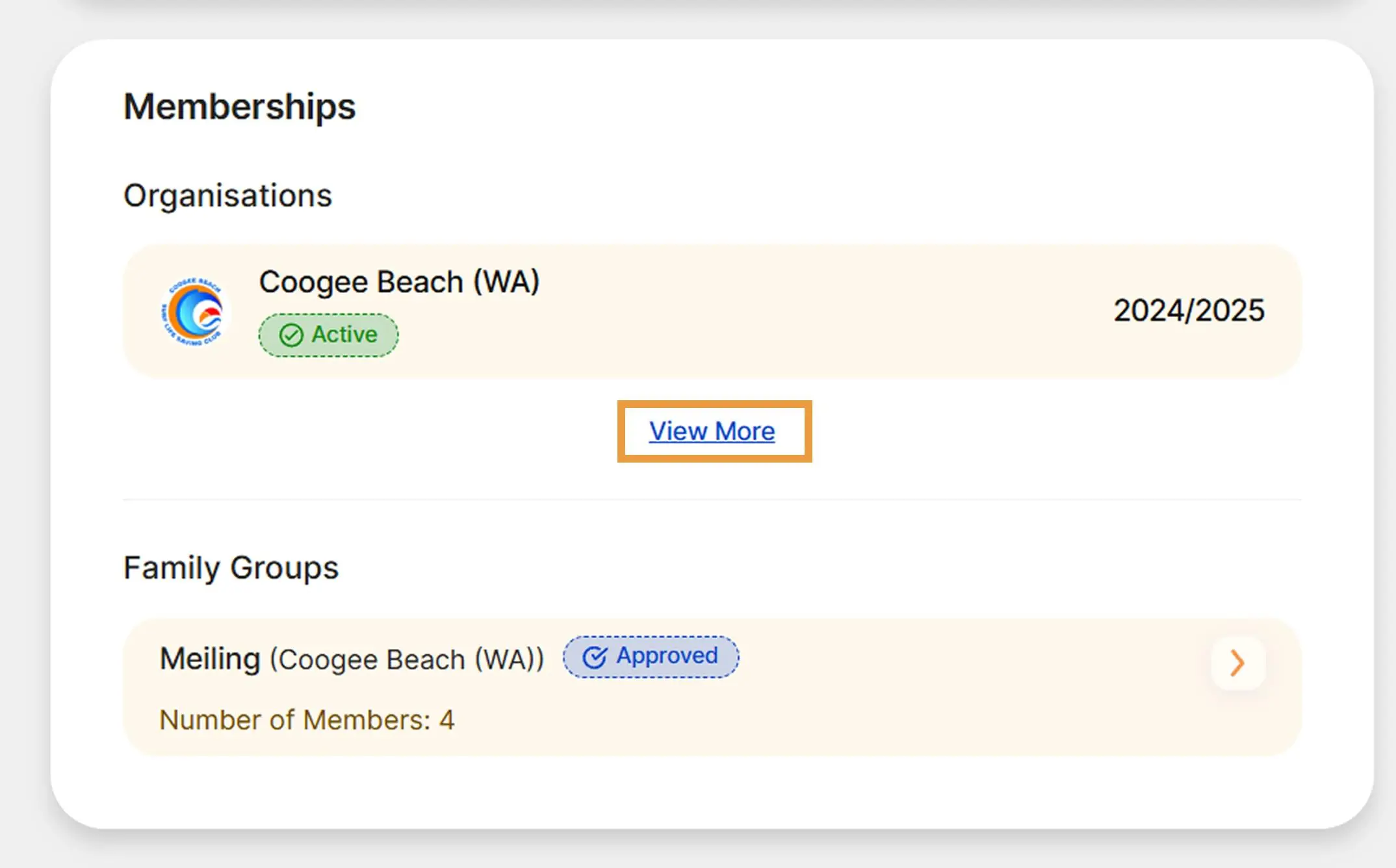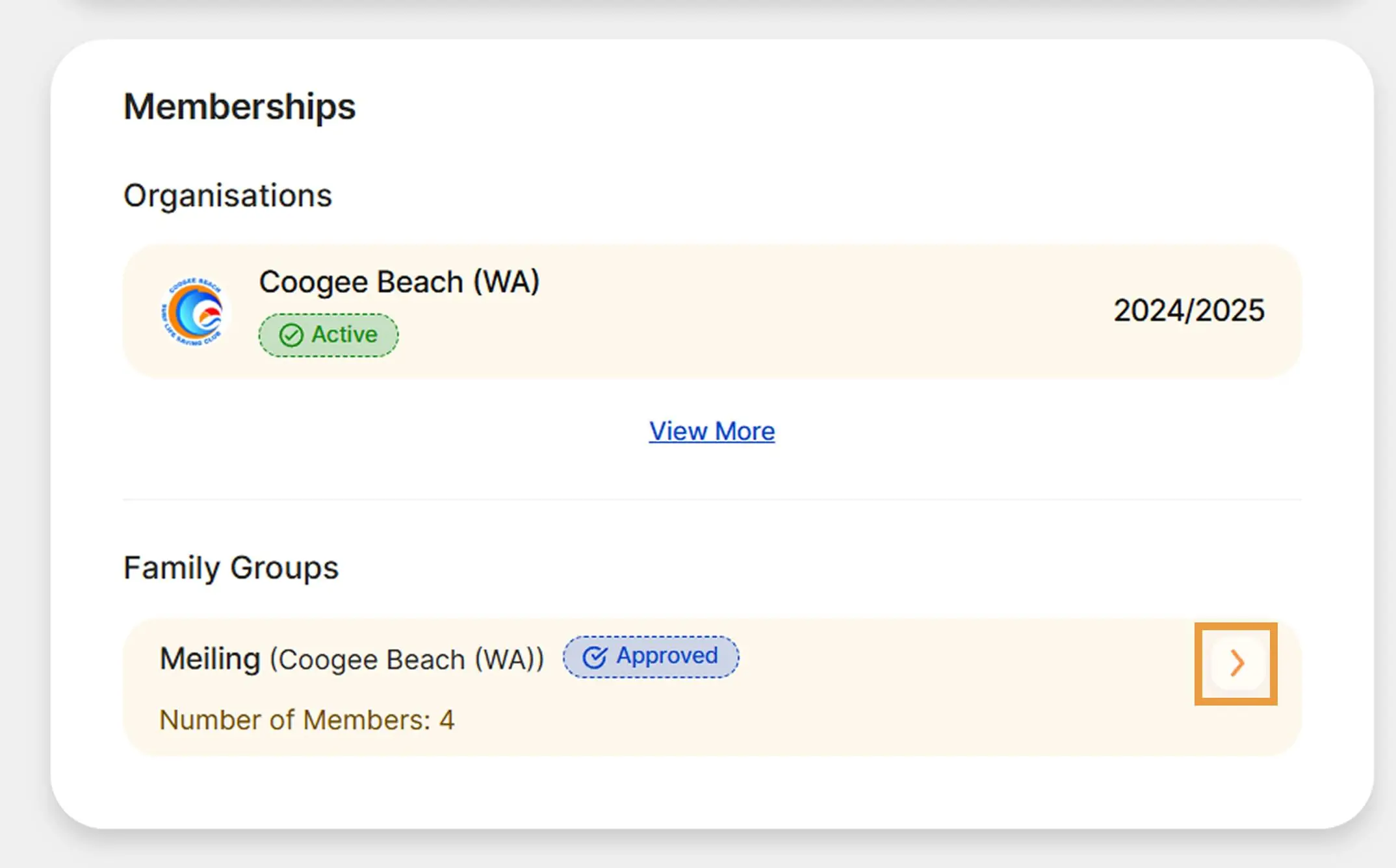 On your Dashboard, click on View More under Organisations.