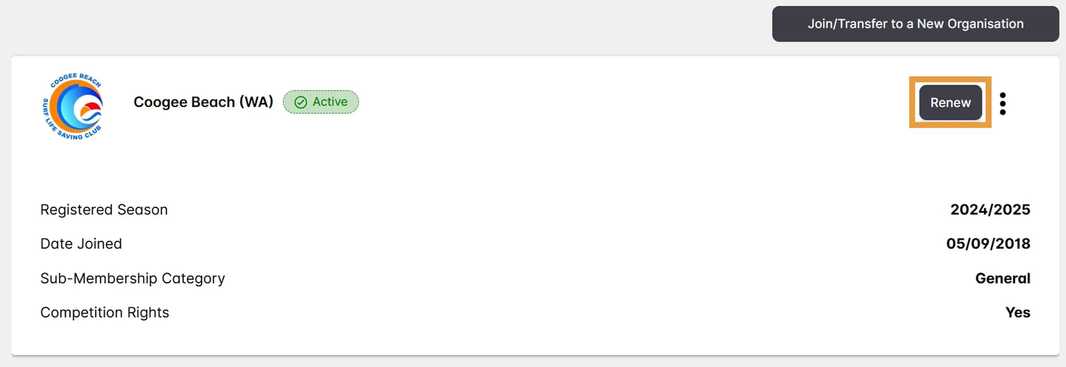 Select ‘Coogee Beach (WA) (ensure you select the correct Coogee Beach!) from the Select Club drop-down menu.