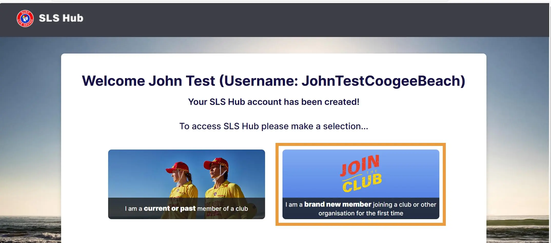 Sign in to your existing SLS Hub account. Please note, some users are having problems creating an account as you need to use your correct details that are in the system. If you need help finding your correct details, email the office on clubadminstrator@cbslsc.com.au.