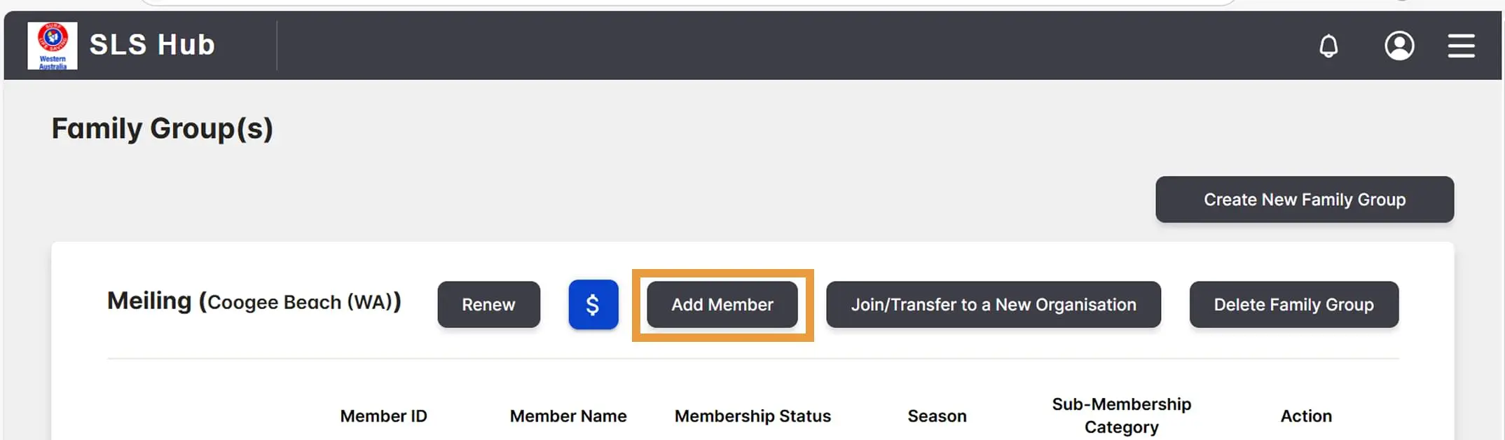 Add a new family member: Click on Add Member at the top of the screen.