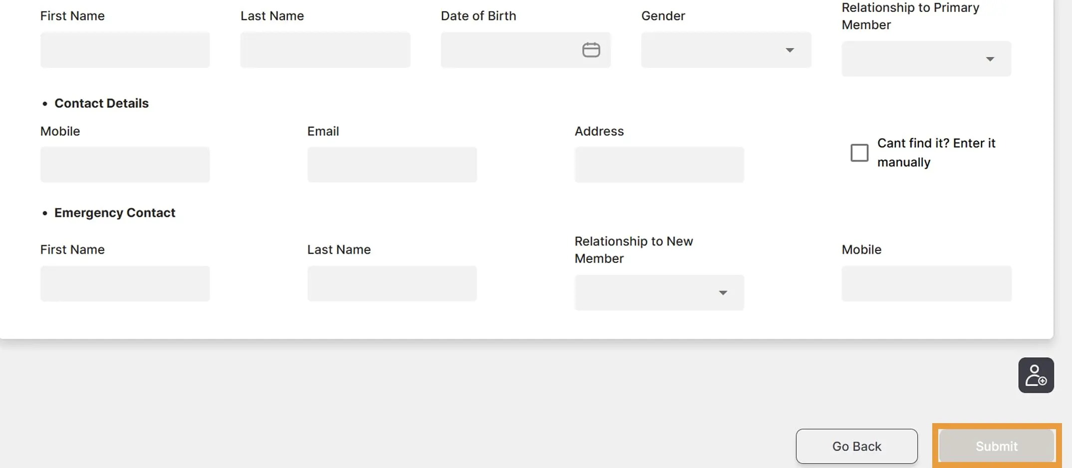 Enter all the details for the new member, then click Submit.