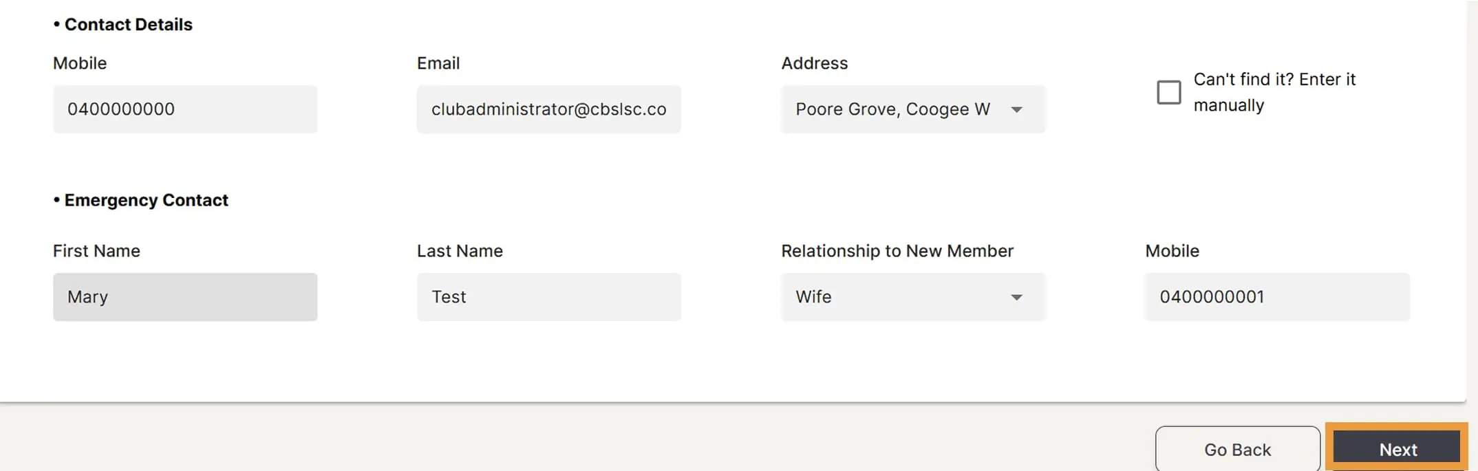 Enter in your contact details and emergency contact details then click Next.